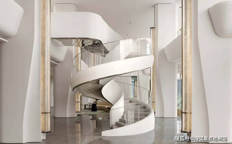 叠墅产品,汲取奥体中心与太湖的无限流淌感,用灵动的线条模拟湖面流淌与波动的状态,以此重新探寻建筑与自然、湖泊、人之间的关系。
