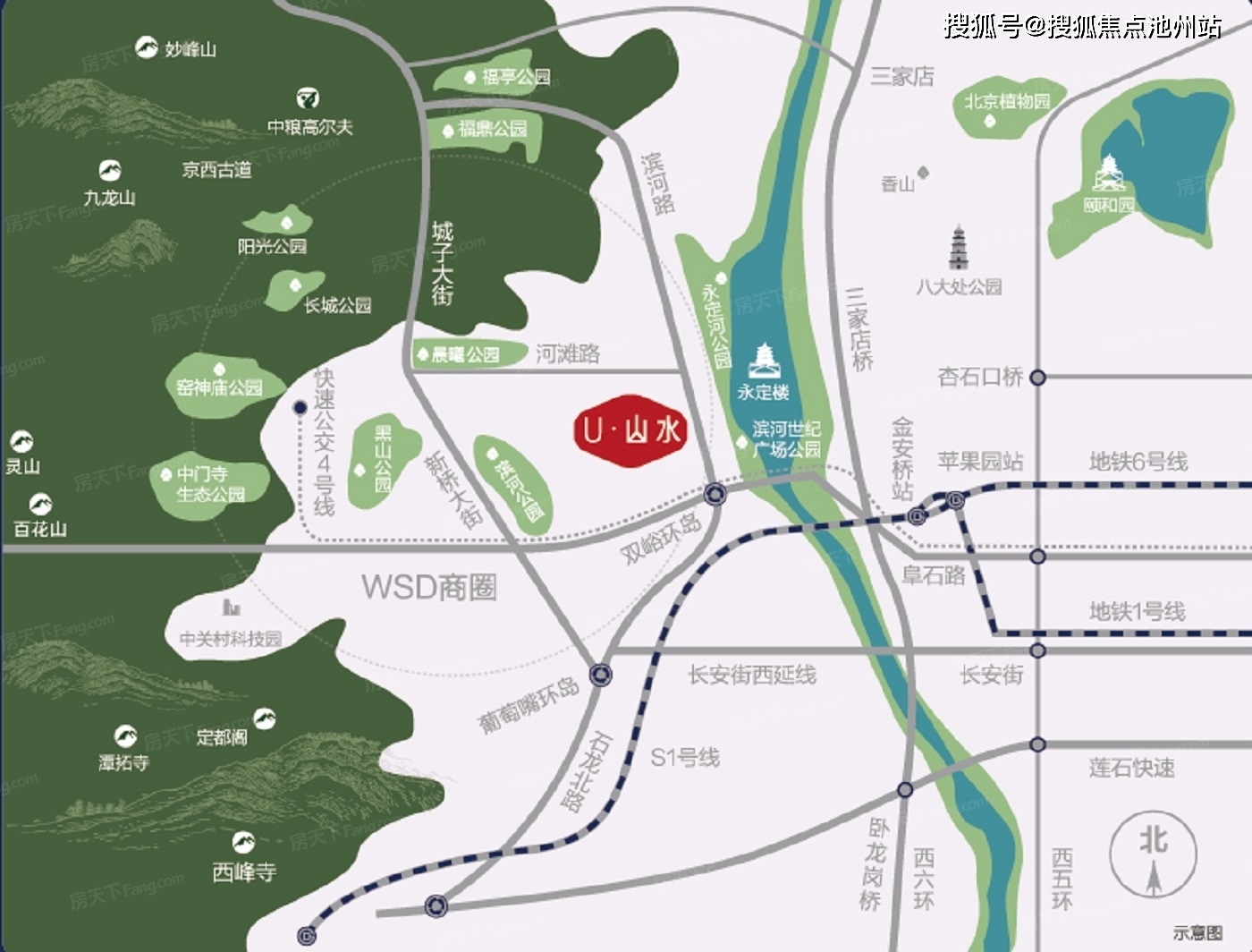 U·山水地处西六环,以其多山多水,树木林立闻名,是北京市区近在咫尺的生态新城。拥有生态涵养发展区和首都西部综合服务区的功能定位,区域规划含浅山区,深山区。欢迎来电咨询TEL:400 - 100 - 1299 转接 0000【售楼中心】,敬请关注!