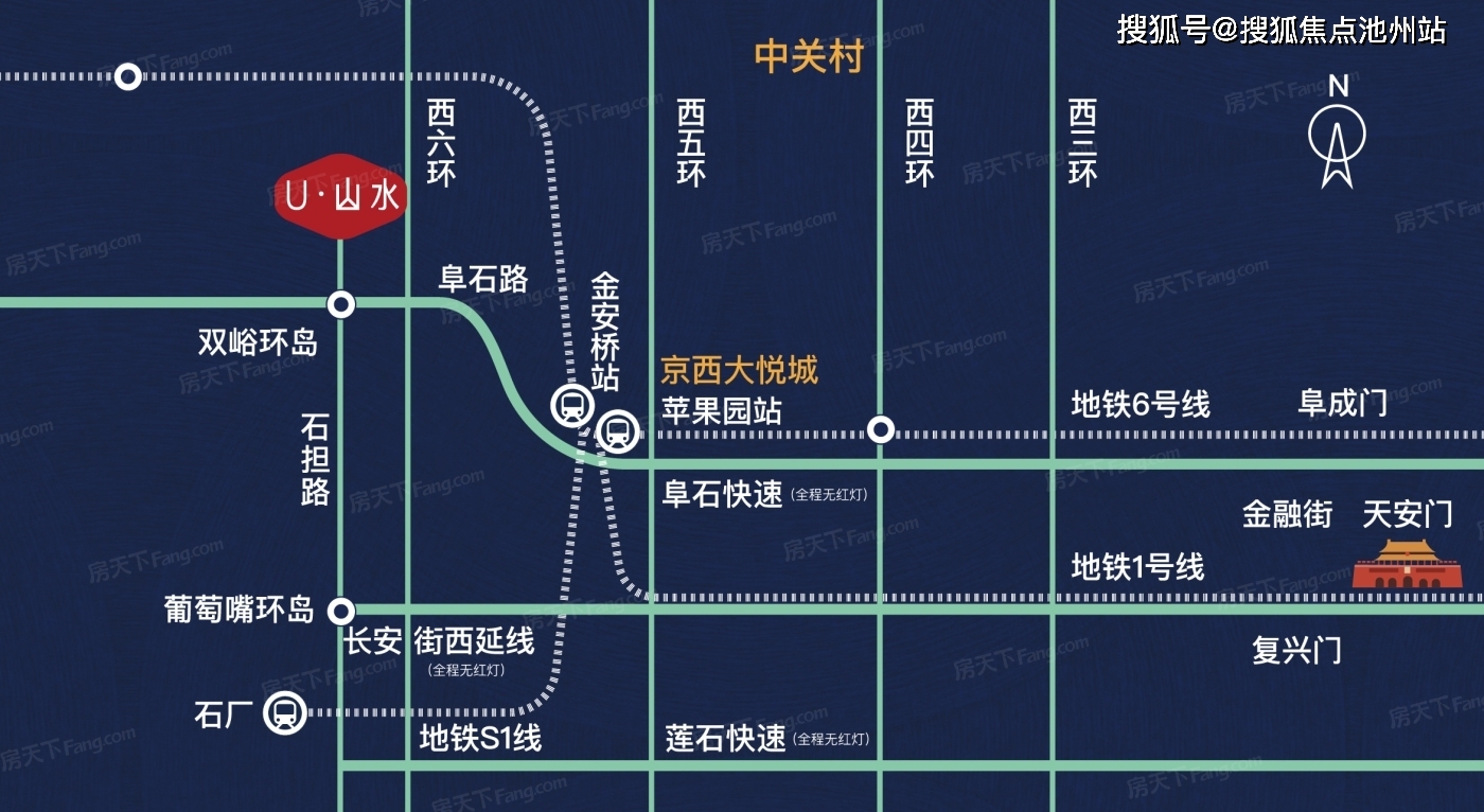 U·山水位于门头沟城区核芯区位,被“三横五纵”立体交通路网包围,扼守主城交通动脉。