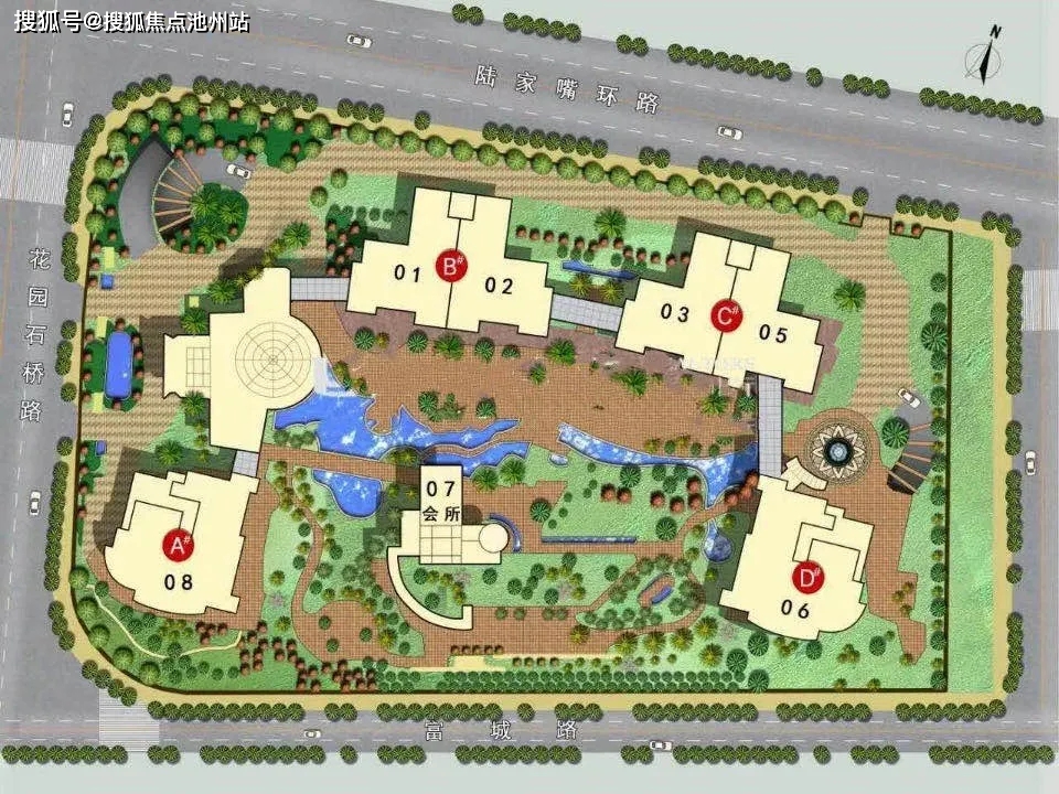由4幢极为豪华的滨江住宅和1幢高级会所组成,较高楼层为44层,高度达153米。其中A幢D幢为一层一户,平层面积约为597㎡,复式面积约为824-986㎡,仅剩1-3楼、37楼(自用)未售,其余房源已全部售出。;B幢与C幢为一层两户,单套平层面积约为435㎡,复式面积约为605-1240㎡;目前,A幢及C幢在售,B、D幢出租(租金8-30万/月)。