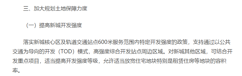 此外还有一点值得关注:“试点实施商住用地动态调整机制,允许将新城内已建低效商办楼宇改造为租赁住房”。