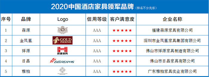 附:2020中国酒店家具领军品牌(排名不分先后)