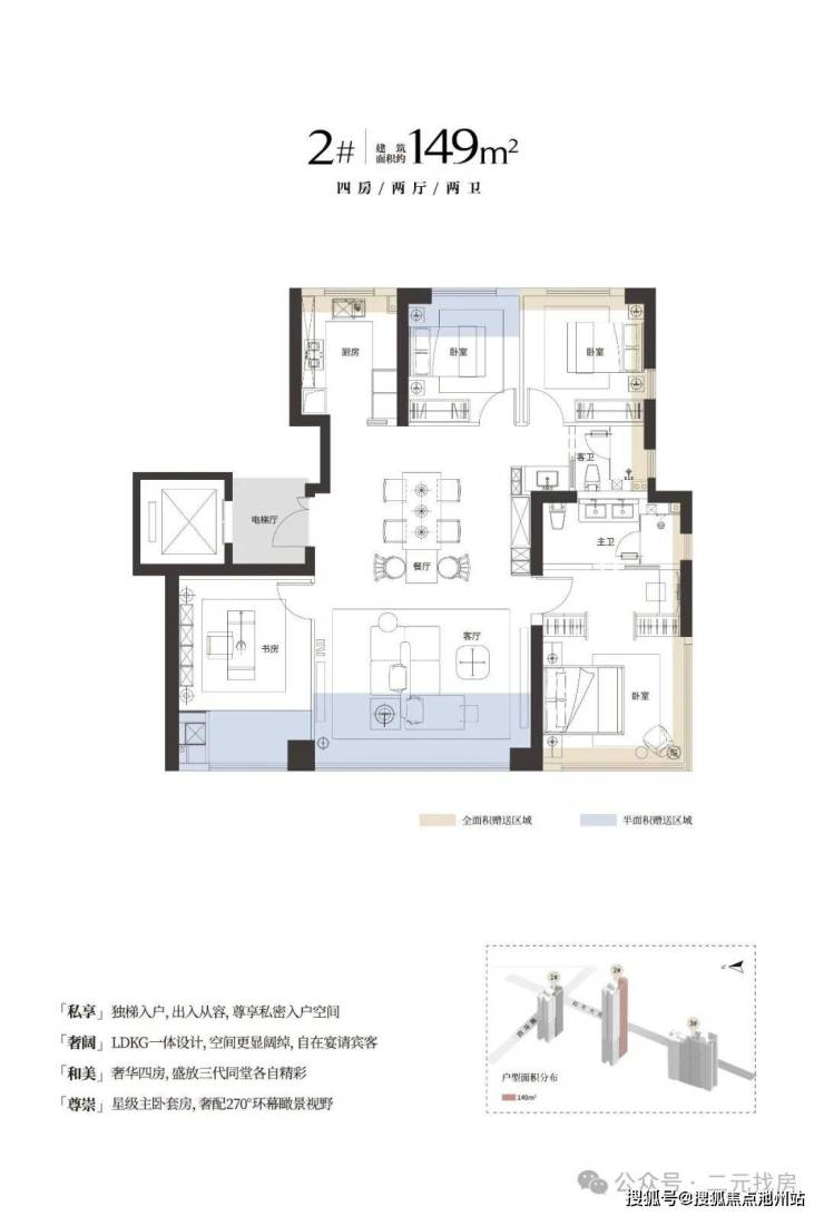 项目户型图已经公开,如下所示,所有户型都是电梯前厅入户。