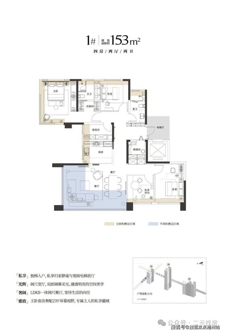 ②153㎡户型:位于1、2号楼的15层及以下楼层的西边户,位于3号楼的南边户