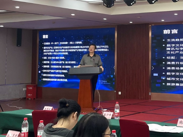 本次活动邀请了北京大学文化产业研究院副院长、中国文化产业促进会副会长、北京烽火文创中心主任陈少峰作为主讲嘉宾,围绕“文旅融合及商业模式创新”进行了主题演讲,相关企事业单位及协会的主要负责人约150人参加现场学习。
