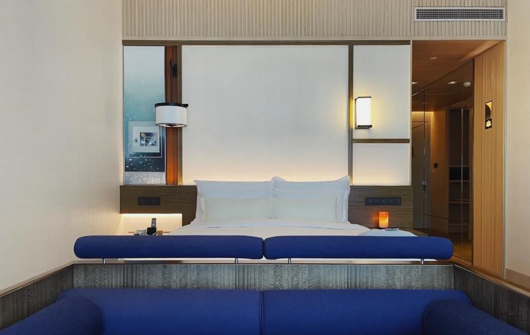 上海阿纳迪酒店十分看重环境的打造,在其看来,环境能够改善住客的身体状态。酒店共有300多间客房和套房,以原木能量与宁静空间为设计理念,营造接近于“自然磁场”的空间环境。原木接近于自然,在本原中接触不同与他者的气质。宁静的空间让住客有闲暇沉思与思考,在静谧的环境中放空身心,继而获得此后的放松与舒适。在上海阿纳迪酒店,每间房都会配备睡眠管家,他会给你介绍房间的细节,并协助安排你在酒店的工坊体验。