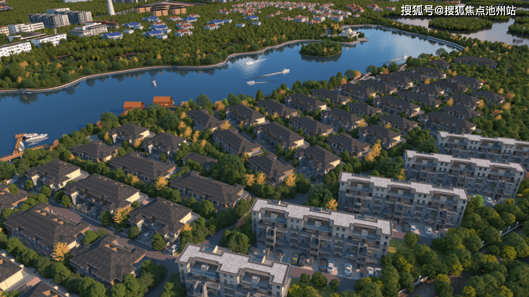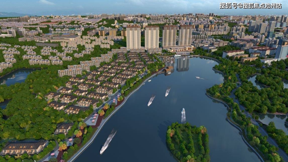 【大美园林】现代典雅园林,布局滨水栈道、沿湖健康跑道、游船码头、阳光草坪等