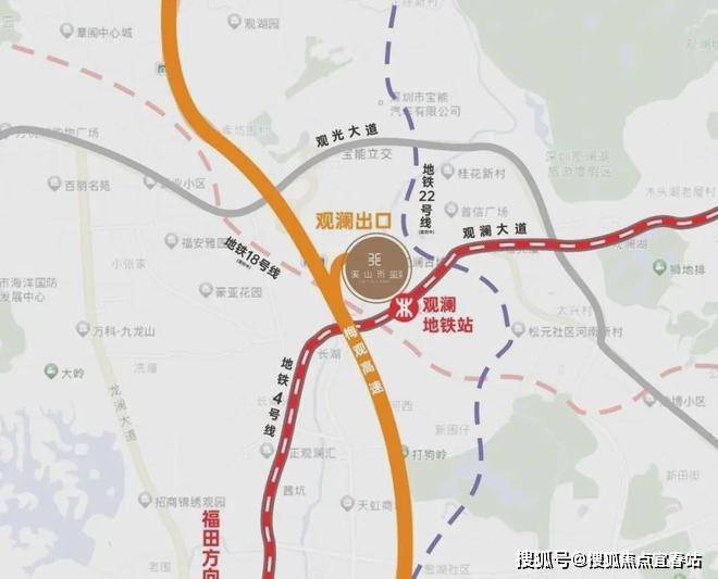 交通方面,临近4号线观澜站,周边还有在建的22号线,可直达北站枢纽、福田CBD;紧邻梅观高速、龙华大道、观澜大道等交通要道,能快速通达全城。