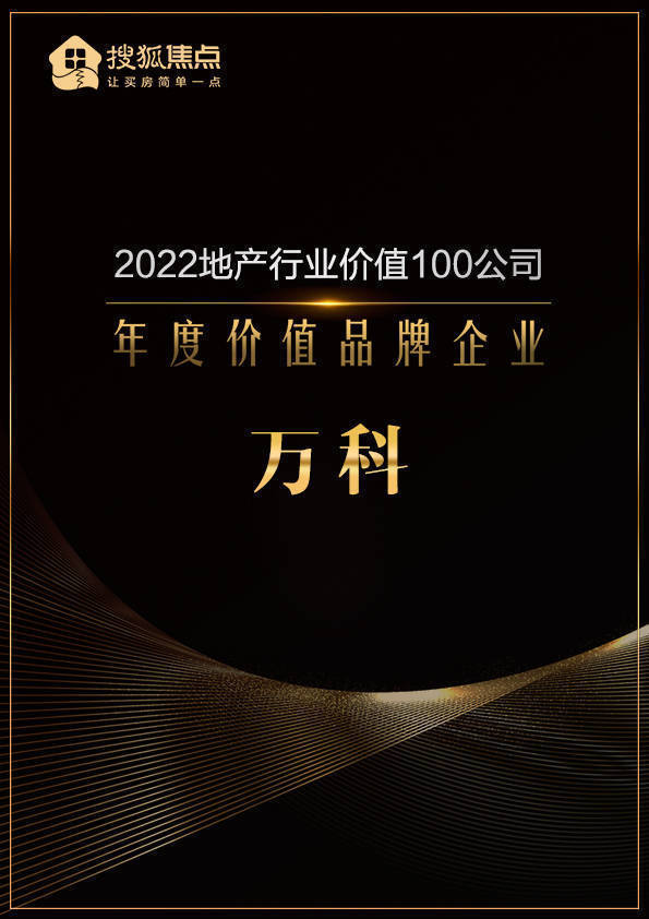 评选结果显示,万科获颁2022地产价值100公司“年度价值品牌企业”大奖。