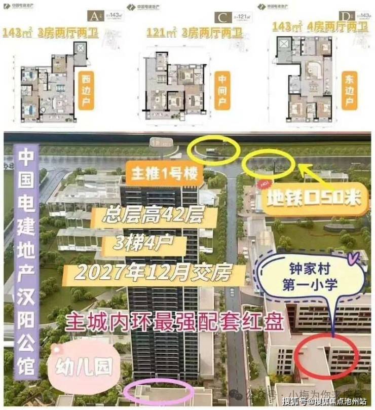 2025年3月25日上午,中国电建地产汉阳公馆项目配建钟家村第一小学开工仪式顺利举行。2024年3月13日,项目取得预售许可。对外案名也由之前的东方境世界观2期改为电建汉阳公馆,折后均价带3500的精装22000元/㎡。后因这个封盘,时隔一年后,重出江湖降价再战,前期拿证的只有1号楼,121㎡、142㎡,带装修据说内部员工价15800元/平,对外卖1.8万,不过它当时楼面拿地价11520元/㎡,整个地块分为四期开发,A地块二期和四期,住宅用地为主,B地块是三期,商业配套及养老设施配套,C地块是一期(小学)