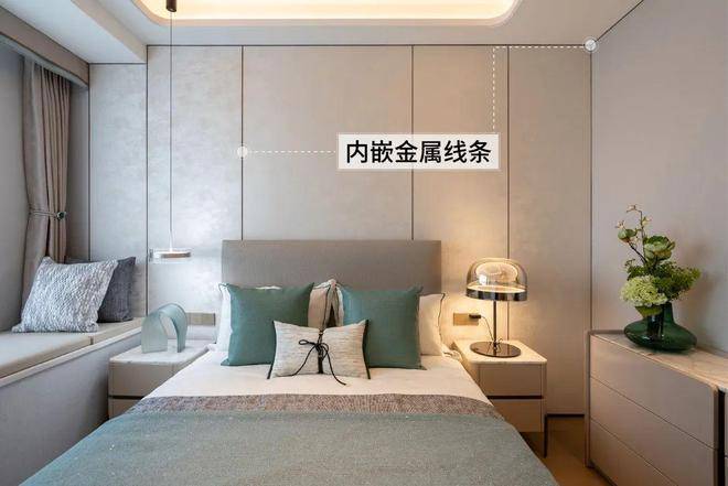 室内墙面及转角处内嵌金属线条。这些线条不仅是装饰,更在视觉上起到了延伸与过渡效果,让空间更具层次。