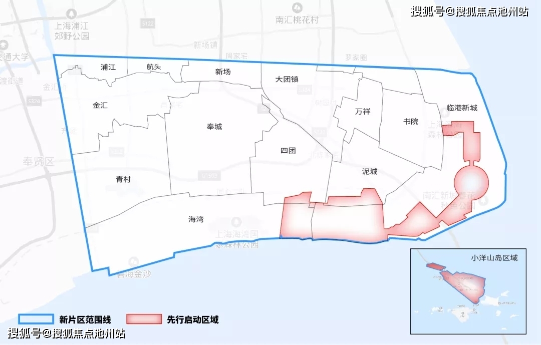 临港新片区规划范围为大治河以南、金汇港以东以及小洋山岛、浦东国际机场南侧,规划总面积约873平方公里。其中南汇新城、临港装备产业区、小洋山岛、浦东机场南侧等区域共119.5平方公里为先行启动区。