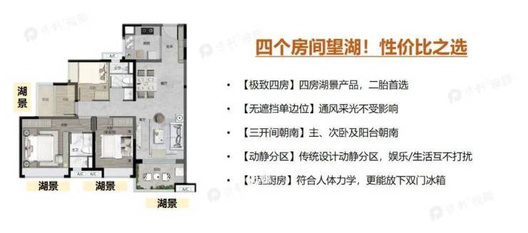 【111㎡四房二厅二卫】性价比之选,湖景四房,超值景观享受!