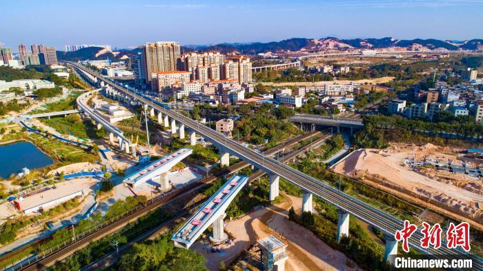 国内首条中低速磁浮旅游专线跨京广铁路连续梁实现转体对接