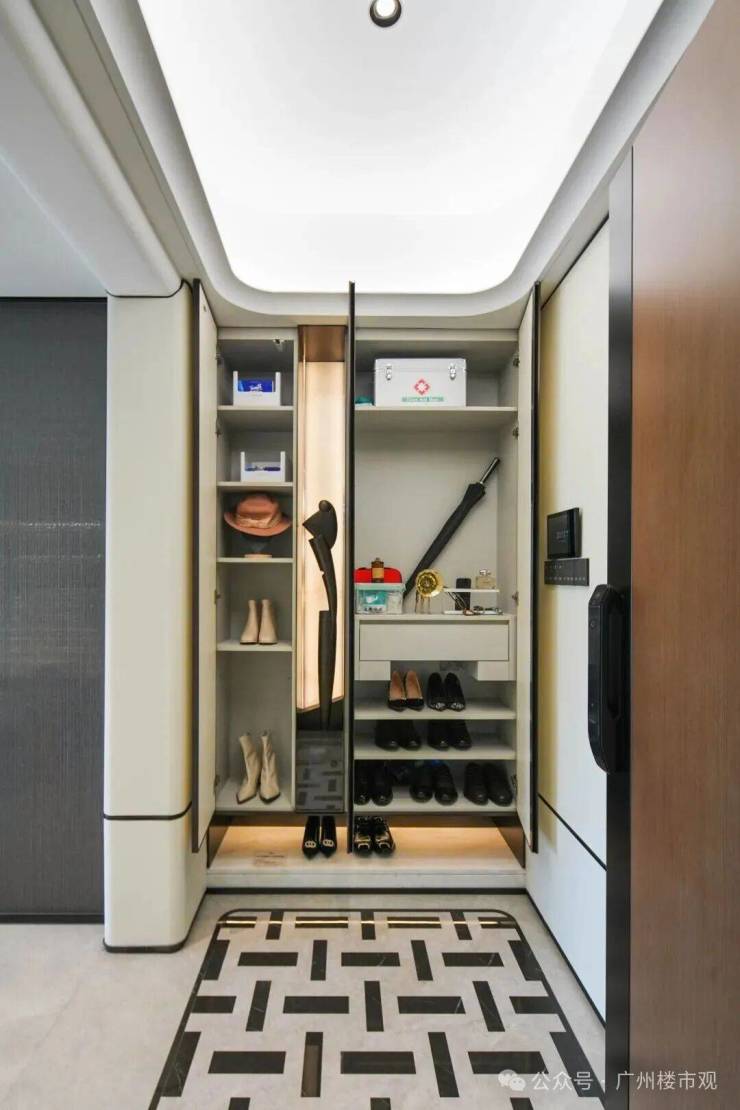 一进门就是整面的玄关柜智能分区系统,雨伞槽、钥匙收纳、高低频鞋层分区、内嵌式坐凳(部分户型),再搭配消毒除臭的“鞋柜精灵”,打造井然有序的“家庭门面”。