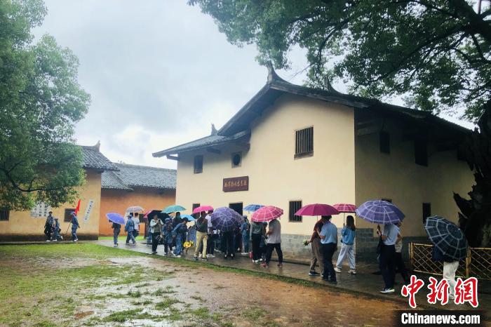 图为游客冒雨参观江西省瑞金市叶坪乡“一苏大”旧址。(资料图) 吴鹏泉 摄
