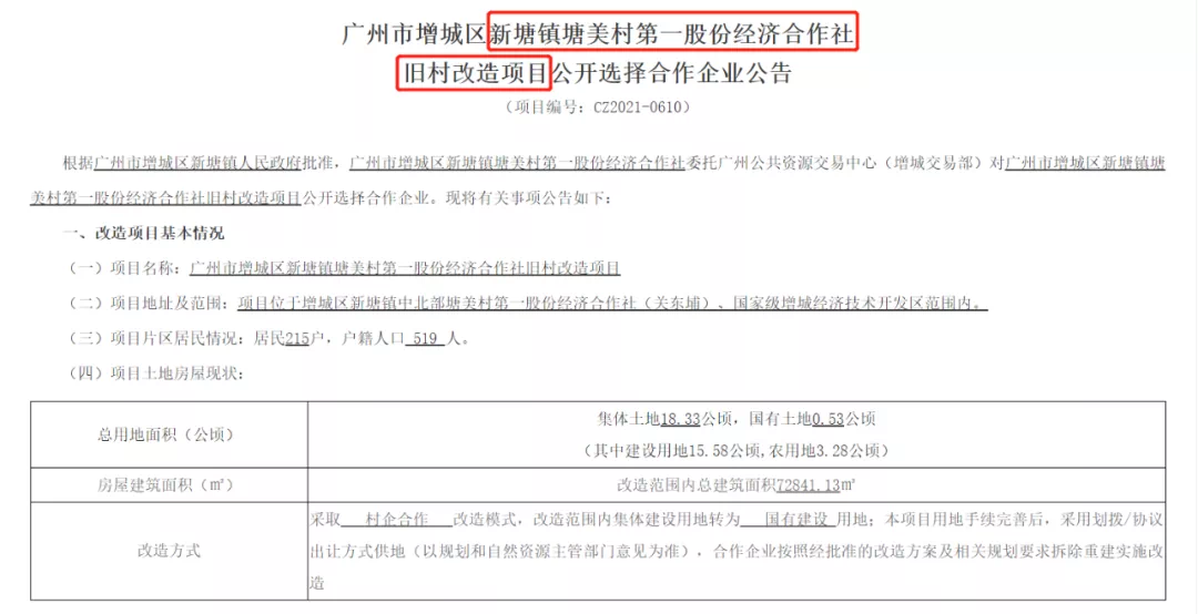 除了荔城,新塘板块近日也有一个旧改项目公开选择合作企业,一起看看!新塘塘美村排名前列合作社投资15亿公开选择合作企业昨日,广州公共资源交易中心也正式发布增城区新塘镇塘美村排名前列股份经济合作社旧村改造项目公开选择合作企业公告。