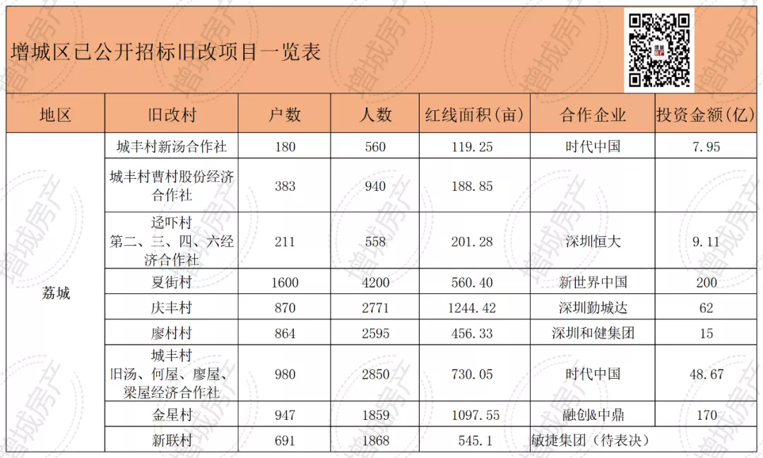 目前,荔城已公开招标旧村改造项目具体情况如下表。