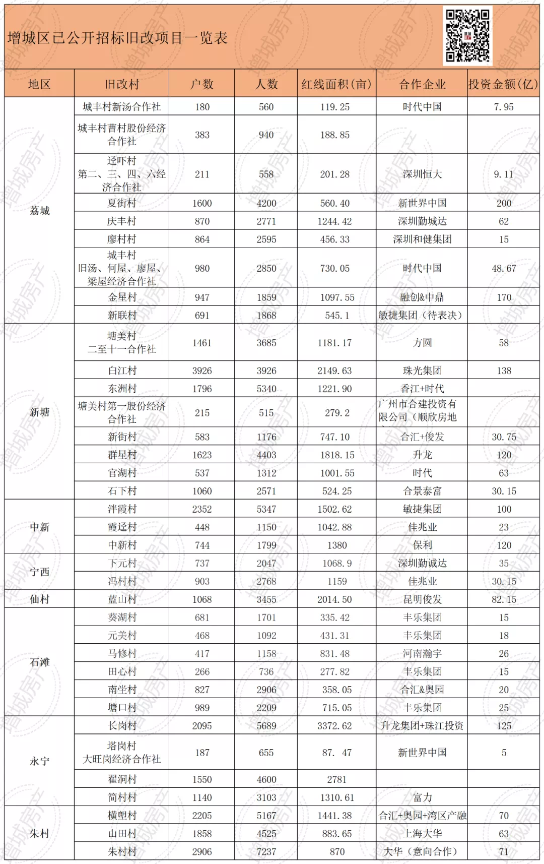 相信在广州十四五规划的指导下,增城旧改马上要进入一个加速发展的时期。最后附上目前增城已公开招标的旧改项目一览表,众多旧改项目中,你最看好哪一个?一起来留言区聊聊吧~