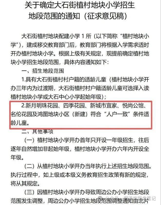 越秀·鸿璟台这刚好划进植村地块小学招生范围。就是那张征求意见稿里,圈出的 “新月明珠、四季花园、鸿图地块新建小区”片区。