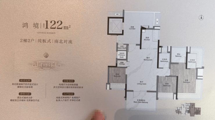 122㎡四房,赠送16平的私家电梯厅,单价预计在3.6-3.9万/平,总价440万起,西边户看小区园林会比东边户要贵。