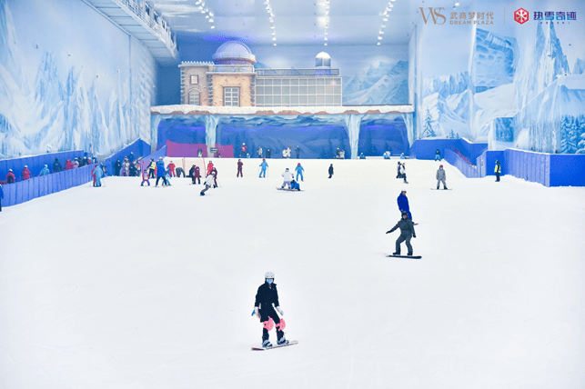“武商梦时代,空中滑雪场”。WS热雪奇迹位于武商集团打造的“巨无霸”商业地标——武商梦时代广场8层,总面积为2.6万平方米,是武汉市中心名副其实的“空中滑雪场”。滑雪场拥有初中级雪道,适合初上雪以及滑雪运动学习进阶。WS热雪奇迹市场负责人朱小燕介绍,项目引入热雪奇迹训练中心、赛事、营地、会员服务等完整业务体系,提供包括体系化的滑雪进阶课程、专业滑雪赛事、“冰箱宝宝少年营”主题营地、丰富多元社群活动等在内的一系列精彩内容。