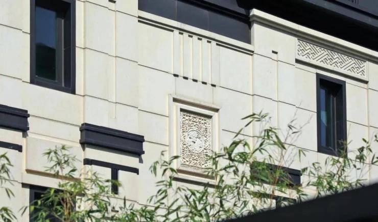 项目取法皇家院落规制,通过威仪府门、镇宅石狮、尊荣门匾、名园造景等方式,将传世家族的威仪展现得淋漓尽致。一府宅门,252颗铜制鎏金“浮沤钉”,开阖磅礴气势;镇宅石狮,采用法国金花干挂天然石材,重达上吨,器宇轩昂;德系品牌 SCHUECO 系统门窗,双层中空 LOW-E 玻璃,营造丰盈与外、安静于内的家族生活。