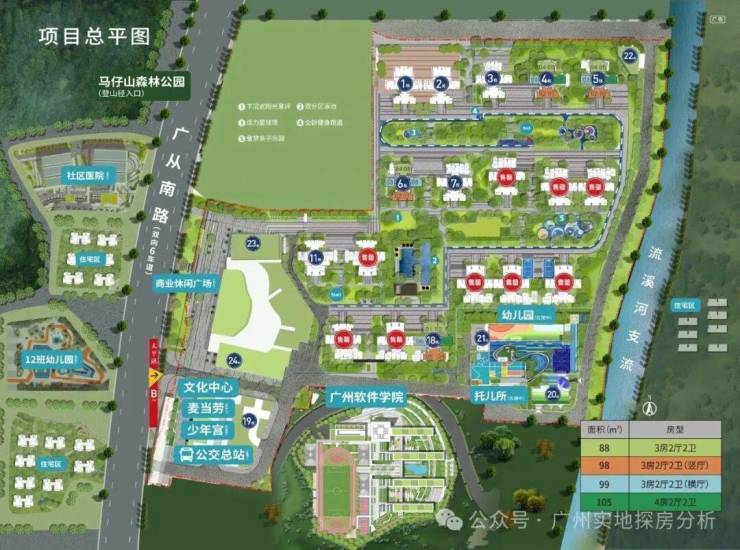 社区配套:规划配建少年宫、公交总站、18班幼儿园、文化中心、麦当劳、社区配套,包括游泳池、篮球场、儿童乐园等。