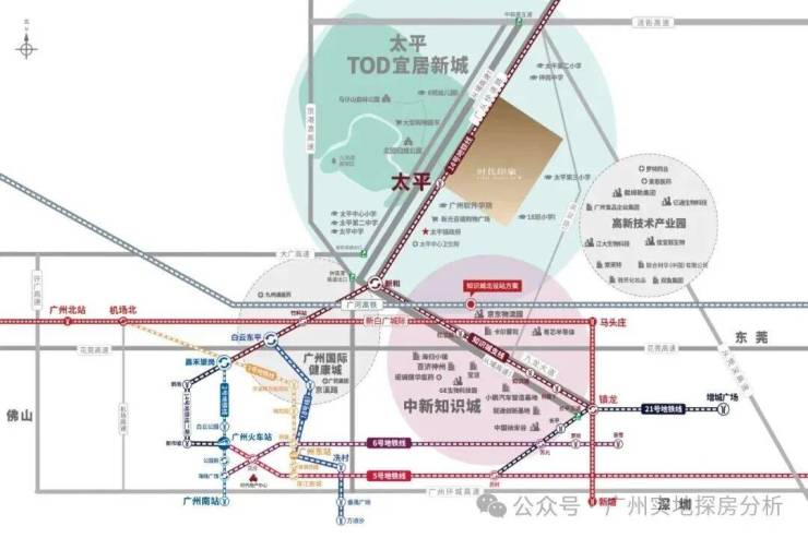 项目位于白云东和知识城北的从化区,就在从化区太平镇地铁14号线太平站B出口。