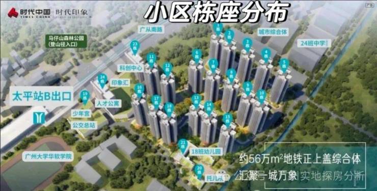 项目为地铁14号线太平站B出口上盖物业,步行即可到达地铁站,2站可到知识城核心区,通过嘉禾望岗可快速接驳2号线、3号线,畅达珠江新城、越秀等核心区域,交通通达性较好。