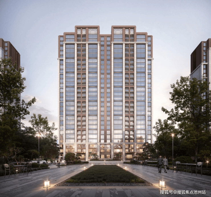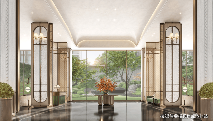 一庭:【瑰丽门庭】酒店式豪宅美学界面,以金属细节和石材彰显贵气,定制化艺术铺装彰显入口门庭;奢华大挑檐,中心设计艺术水景,增加入口仪式感;结合门楼落客等候区设计山水庭院,由恢宏门庭到自然花园,华丽向自然的过渡,彰显豪宅礼序。