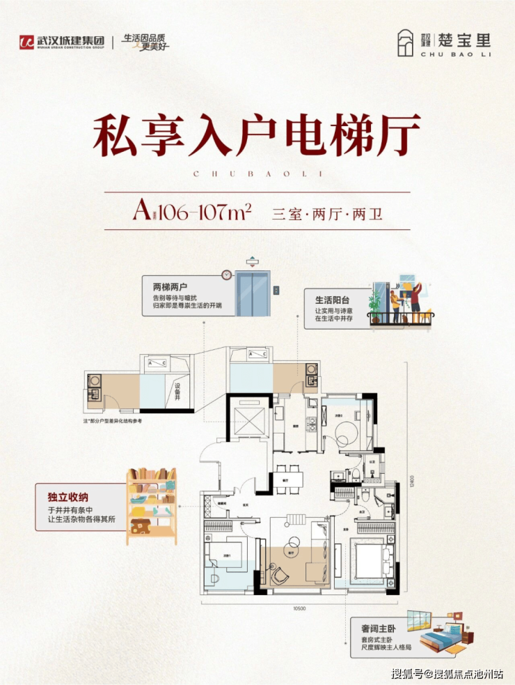 住宅部分采用低密度设计,创新打造了汉口历史风貌区首个梧桐浓荫新型住区,楼栋最高26层,最低仅10层,全系两梯两户,建面约106-165㎡,预计将于今年10月份正式面市。