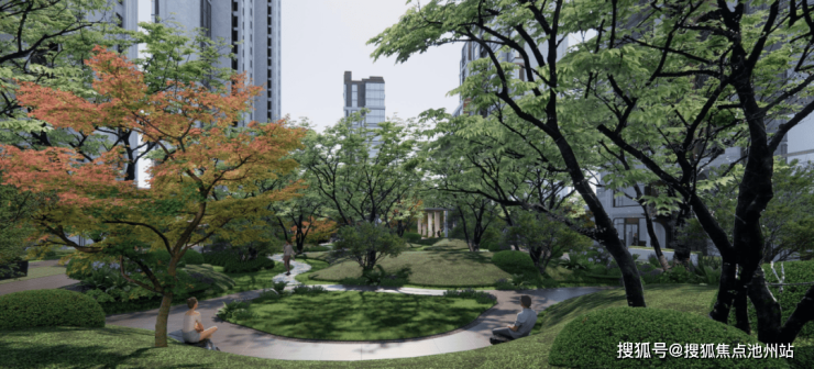 十花园其三:【康养花园】以康养为主题,设置康养花园、林下太极、健身平台等,从社区邻里、生态自然、健康运动等多维度提升居住体验,周边设计观景平台,阳光草坪与组团植物共同营造静谧休闲空间,便于长者交流与家庭户外活动。