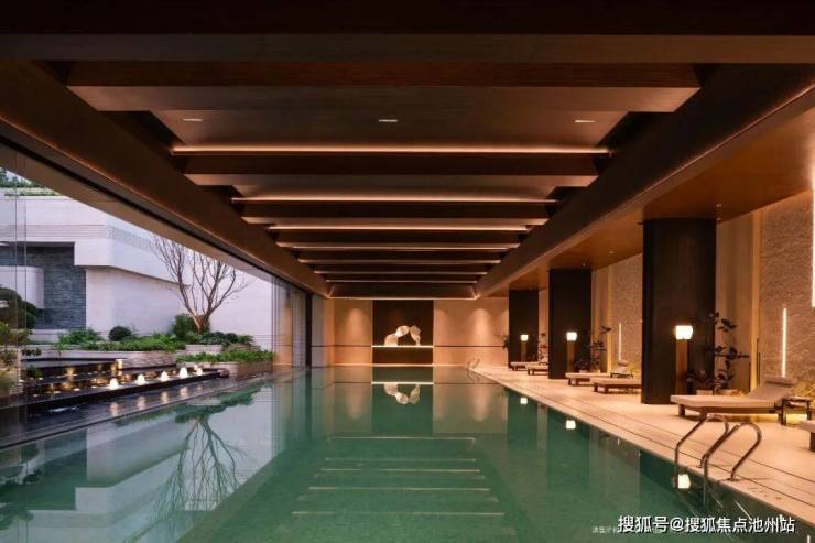 会所内设板块罕见的无界恒温泳池,巨大的可移动玻璃门将室内空间与下沉庭院无缝衔接。门开之时,庭院景致漫入室内,游泳仿佛畅游于自然之中。健身房、瑜伽室、休闲水吧点缀其间,成为安放身心的精神谧境。