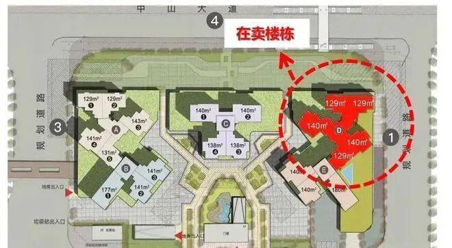 在售楼栋:A/B/C/D 栋,在售户型 129㎡、140㎡、180㎡四房,均为奢阔改善型产品。