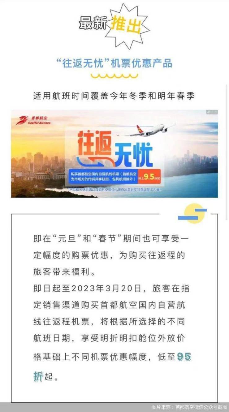 近两年,每到“双11”期间,航司们都在频频“出招”,推出多种机票产品、优惠活动。近一段时间以来,南航、海航、首都航空等航司均推出了新的机票产品。其中,首都航空自10月底就推出了“往返无忧”产品。首都航空相关业务负责人告诉北京商报记者:“此次首都航空的‘往返无忧’产品是在之前产品版本上的升级,扩大了销售及适用航班日期,适用航班时间覆盖今年冬季和明年春季,推出后市场反响热烈,销量较好。”