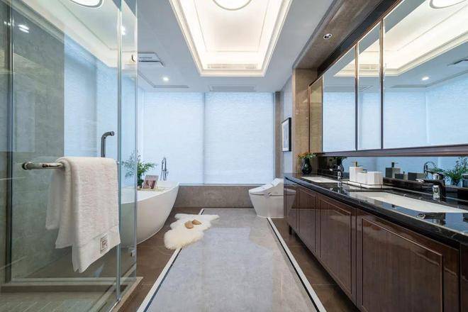 其中主卧做了豪华套间,女主人心水的走入式衣帽间,堪比时尚秀场,主卫更是容得下浴缸+双台盆,让每一次沐浴都带来意想不到的美妙时光。