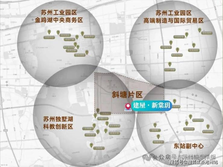 金鸡湖右岸(苏州之眼摩天轮+文华东方酒店+苏州中环广场+当代美术馆)|阳澄南岸创新城|吴淞湾未来城|金光科技产业园|苏相合作区|2.5产业园国金中心|李公堤|圆融斜塘老街|各大邻里中心等