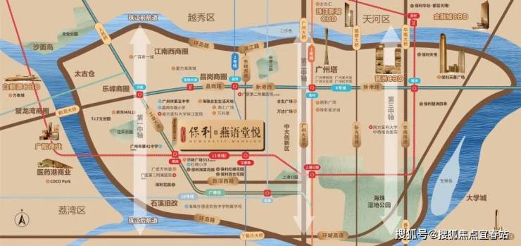 项目坐落于工业大道中,背靠珠江后航道,傲立于海珠新活力文商旅融合圈与广州市“首个”后航道服务型制造创新带交汇的核心地带,海珠后航道将成为海珠未来唯一连片开发的豪宅板块。