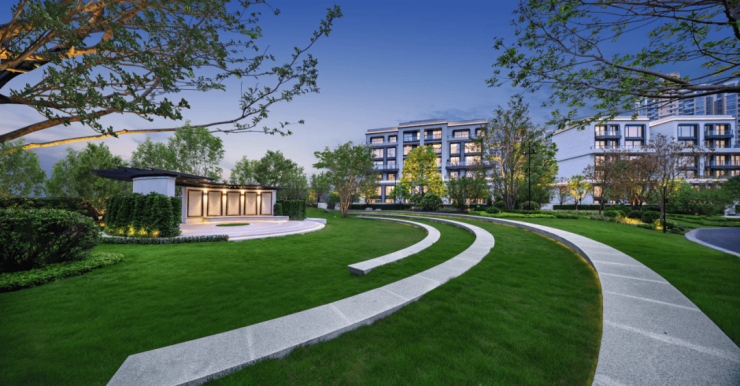 ②约6000㎡自然国际圈层会所:以下沉式庭院的规划进行打造,共有地上两层、地下一层合计三层的设计,打造多庭院花园及多露台空间,提供清晨午后惬意时光,使场所融入自然、亲和自然。