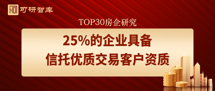 TOP30房企研究:25%的企业具备信托优质交易客户资质