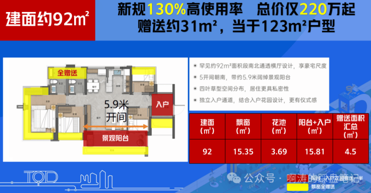阳台、飘窗、花池N处赠送空间,所有户型阳台率20%,这个数值放到全广州,都少有对标者。加上官方严控空间赠送率,阳台率控制20%,恐怕也无后来者能超越。