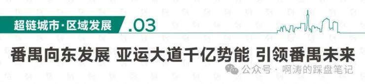 雄踞南北格局:番禺发展已形成“北万博,南区府”双核心格局。万博区域以经济为支柱,区府兼具行政与生活服务核心功能。