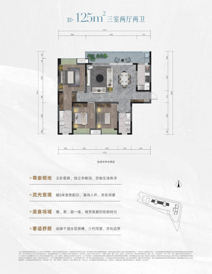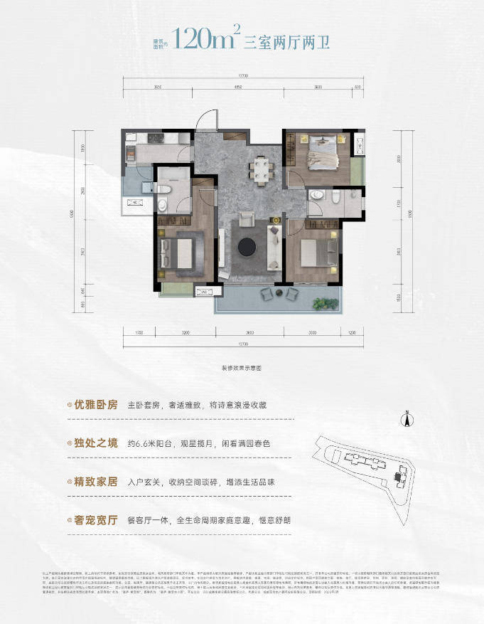 舒适尺度:约3.6米-4.95米阔尺客厅,约10-12㎡大景观阳台
