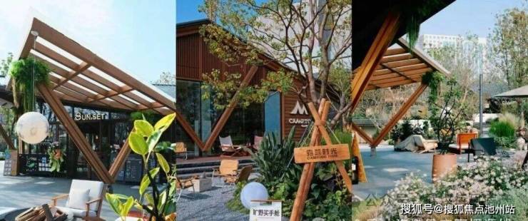 项目建筑错落布局,每栋都拥有可装饰、可布展的“前庭后院”,随意摆放几把桌椅、或搭建几个帐篷……与商家主题相搭配的自然、野趣、户外体验就呈现在眼前。