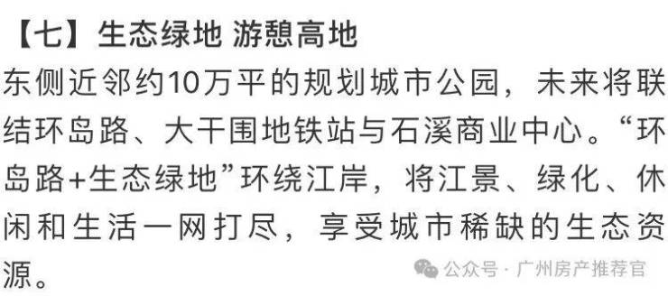 教育配套:项目北侧规划有18班幼儿园,周边小学有海珠区外国语实验中学附属第二小学(公办省一级)。中学有两所省一级名校,南武中学及江南外国语中学。