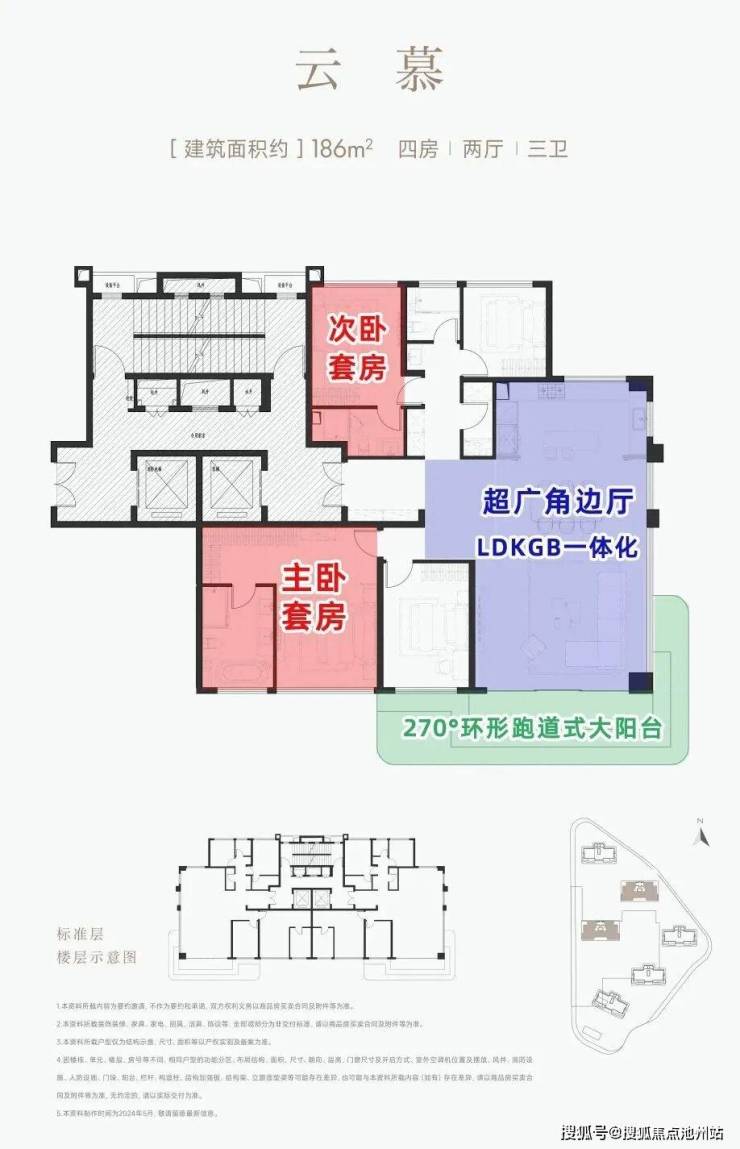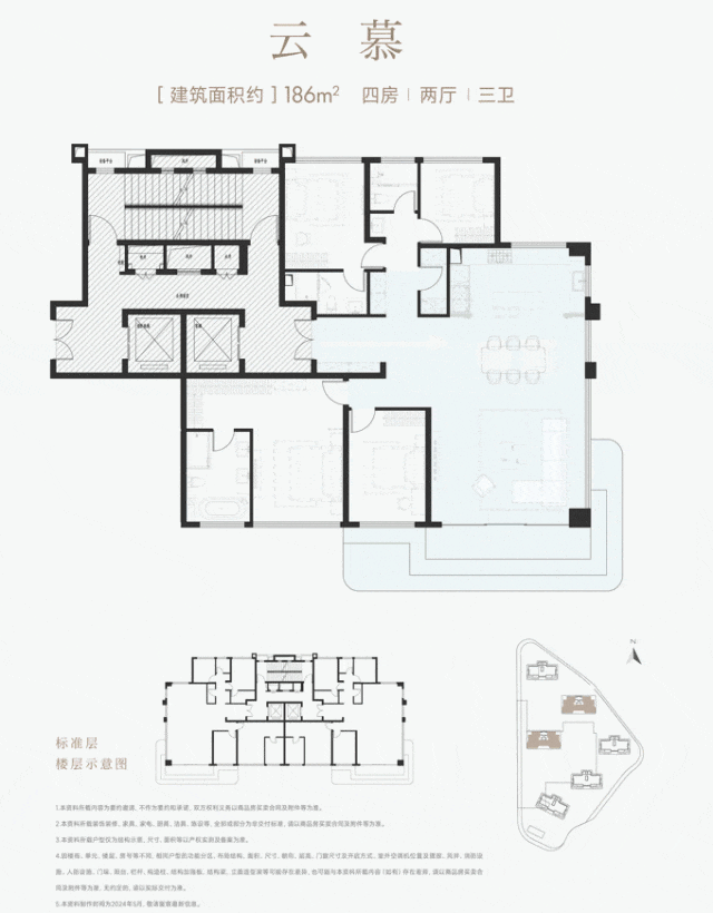 建筑面积约186㎡户型,得房率近100%,相当于市面220㎡套内空间。