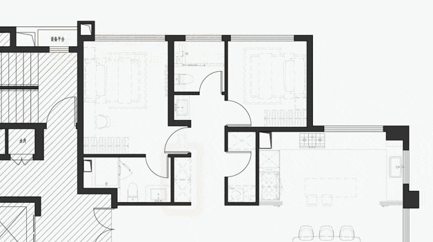 LDKB一体化设计,大宅的专属气场,放大空间的同时还深化了家人之间的互动、交流,让家庭成员可以处于同一视线区域,近60㎡的超大公共活动空间,满足更多社交聚会、亲子互动、休闲娱乐的空间多元化场景需求。