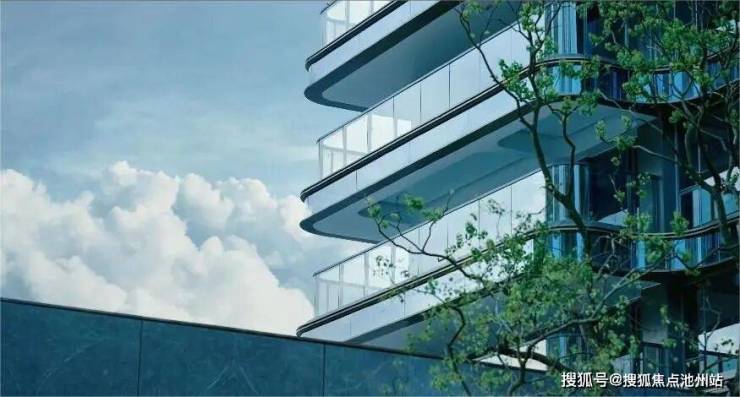 招商·武昌序建筑立面以扎哈曲线为灵感,运用大量圆弧和曲面线条设计,勾勒轻盈、现代的“云翼建筑"造型,搭配高达约0.48宽奢窗墙比,刷新建筑视觉的新高度,成就内环封面级美学作品。