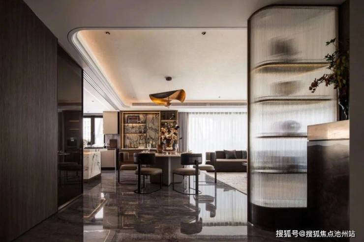 香槟色金属型材与装饰玻璃相得益彰简单高级的色系搭配穿越时间周期,形成历久弥新的审美共鸣